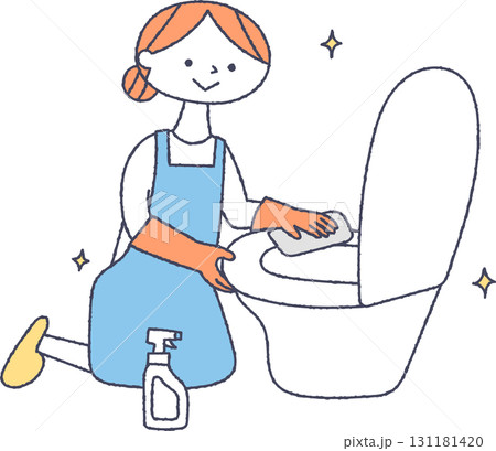 シンプル イラスト お風呂とトイレを掃除する女性 人物