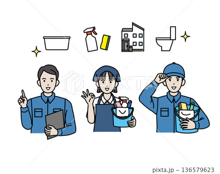 シンプル イラスト 家事代行サービスの男性と女性 人物セット