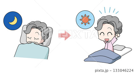 良い睡眠をとり朝にスッキリ起床する健康なおばあさん