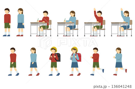 小学生の女の子の一日のセット