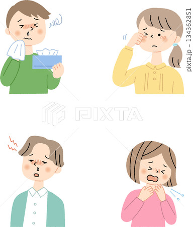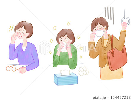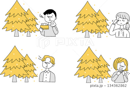 花粉症の症状に困る人々のイラスト
