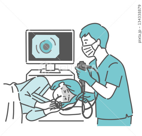 鼻からの胃カメラ検査で苦痛を感じる女性のイラスト(経鼻内視鏡)