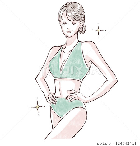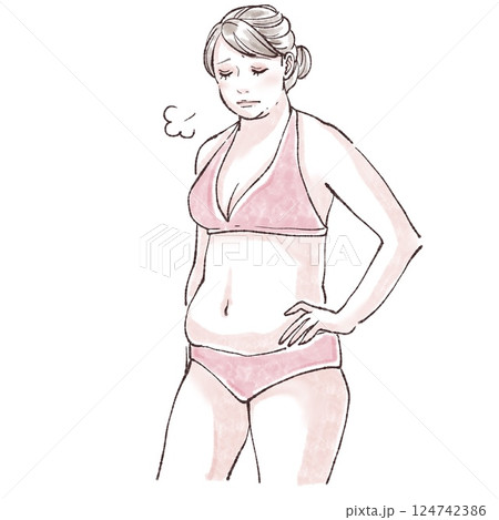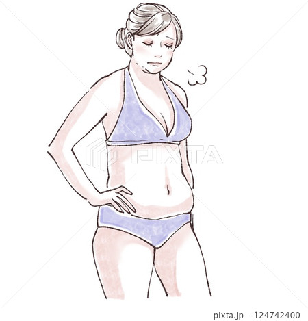 水着の女性/女性のお腹/腸活/便秘/脱毛/ダイエット/ウエスト/くびれ/シェイプアップ/皮下脂肪/