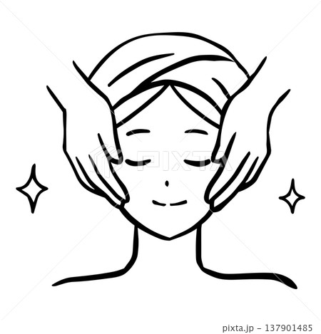 頬に手をあてる女性のイラスト 洗顔、美容、マッサージ