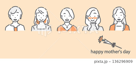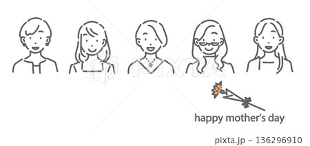 笑顔の若いお母さんたち 母の日 シンプルでお洒落な線画イラスト