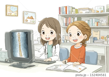 美優シリーズ:検査結果を説明する若い女性医師|安心感のある医療カウンセリングイラスト