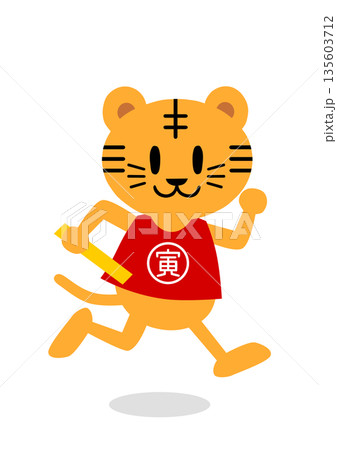 リレーのバトンを持って走る虎(寅年)のイラスト