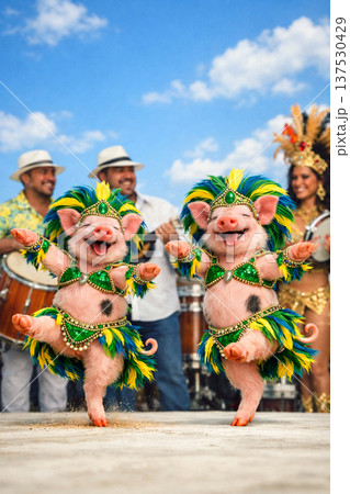 サンバを踊る子豚