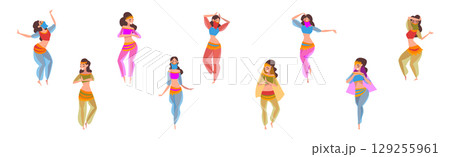 Beautiful Eastern Girls Dancing Belly Dance Vector Set