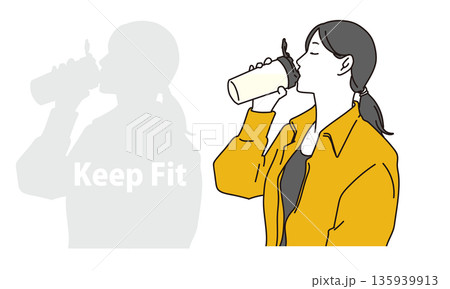 プロテインを飲む女性の横顔イラスト素材