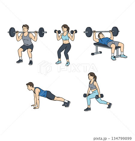 ダンベルを使って下半身をトレーニングする男性イラスト素材