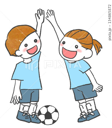 サッカーで競い合う男の子と女の子 顔 ストックイラスト素材