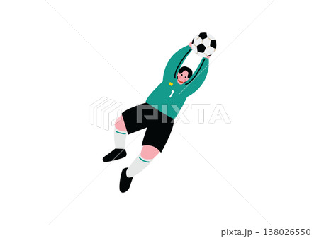 Goalkeeper is saving the ball, Set of football or soccer player cartoon characters, Flat design, Isolated on white background, Vector illustration