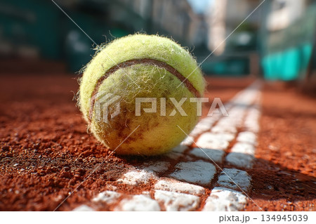白線ギリギリ!クレーコートに弾むテニスボールの決定的瞬間