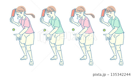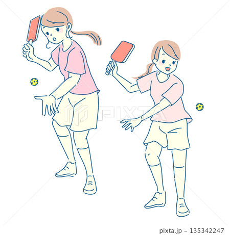 ピックルボールを楽しむ女性のイラストセット