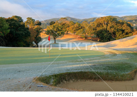 九州長崎市 オーシャンパレスゴルフクラブの凍てつく朝 一番スタート