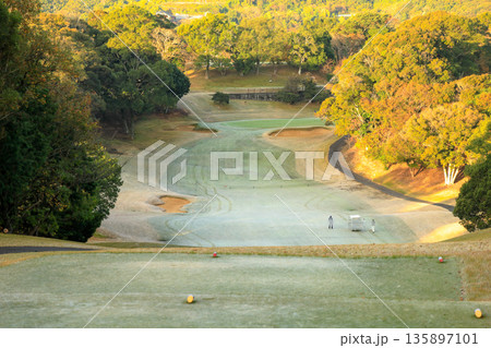 九州長崎市 オーシャンパレスゴルフクラブの凍てつく朝 一番スタート