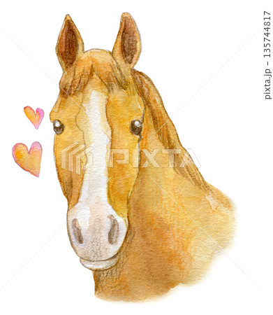 水彩イラスト 手描き 白い流星の栗毛の馬