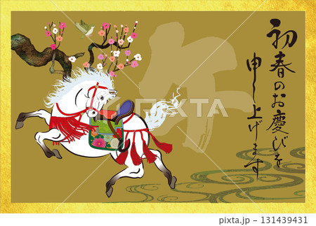 年賀状素材イラスト 午年 七福神 梅 あけましておめでとう