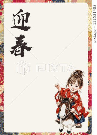 年賀状テンプレート 馬に乗っている女の子(テキストなし)
