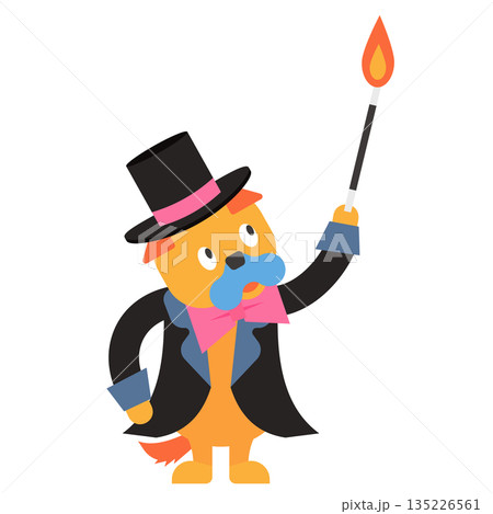 炎を出すかわいいマジシャンの犬のイラスト