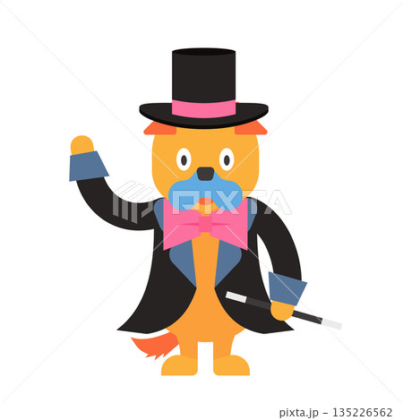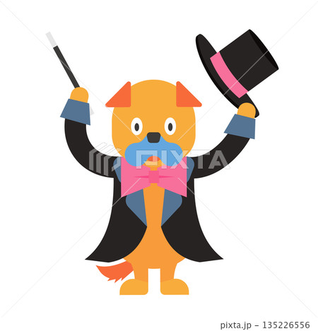 ポーズを決めるかわいいマジシャンの犬のイラスト