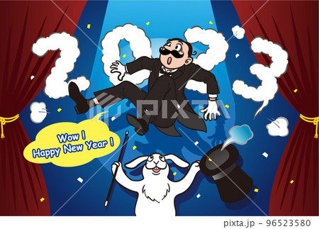 うさぎとマジシャン2023年年賀状(黄色背景)