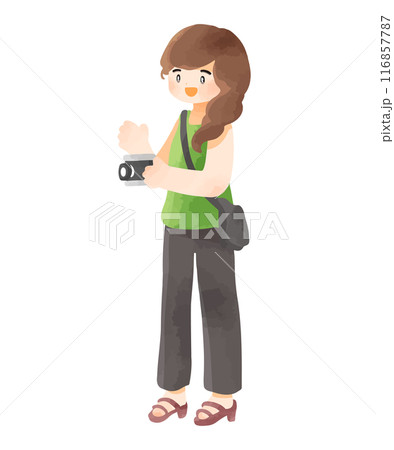 外国人 女性 旅行 全身 イラスト
