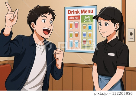 カラオケ受付で話をするスーツ姿の男性たち ビジネス帰りの会話風景