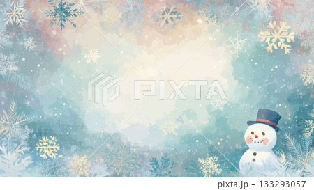 雪だるまと雪の結晶で彩る冬イメージのアナログ風フレーム