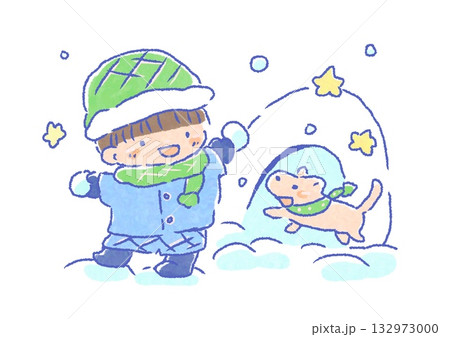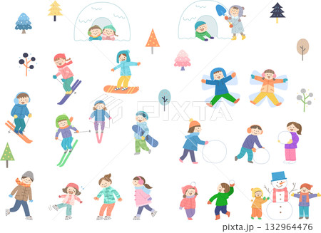かわいい子供たちの雪遊びイラストセット ゆる可愛い手書きタッチ