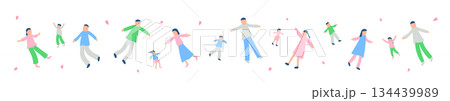 春の宙に浮かぶ人々のイラストセット