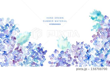 水彩画。水彩タッチの紫陽花イラスト。紫陽花の梅雨イラスト。ベクターアート。