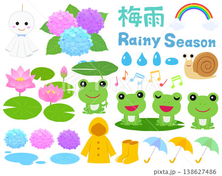 かわいい手書き! 梅雨のデザイン素材セット(フレーム・イラスト・見出し)