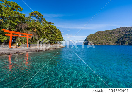 諸口神社 駿河湾と富士山と鳥居 「沼津市戸田」