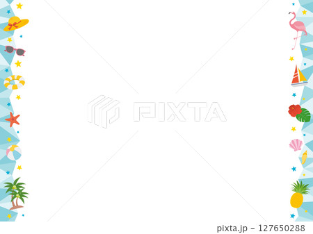 夏と海をイメージした横型の左右のフレームイラスト_青