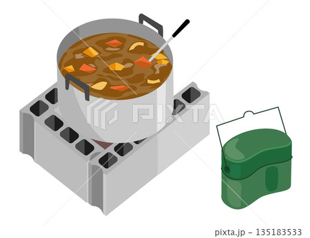 ステッカー風キャンプ関連の単品アイコン 飯盒