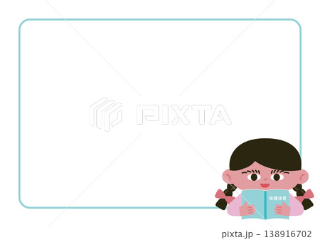 保健体育の教科書を持つ少女とフレームのベクターイラスト素材