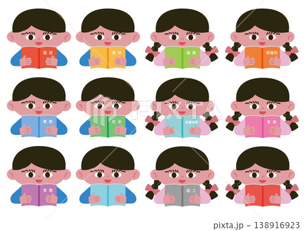 教科書を持つ少年少女のベクターイラスト素材セット