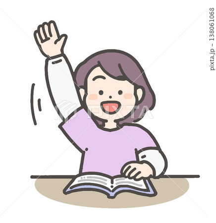 教室で元気に挙手するクラスメイトの友達