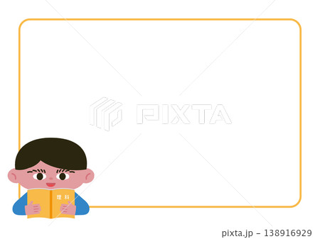 理科の教科書を持つ少年とフレームのベクターイラスト素材