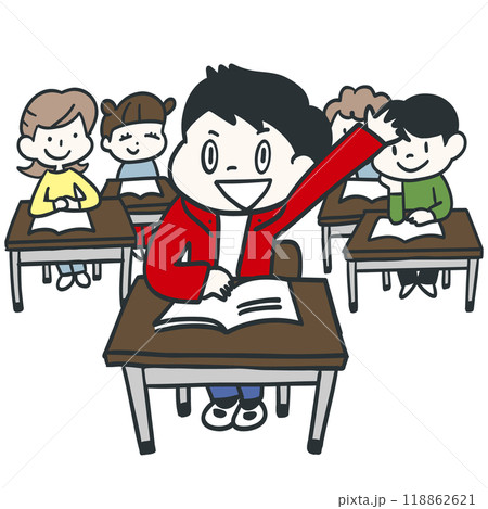 教室で元気に挙手するクラスメイトの友達