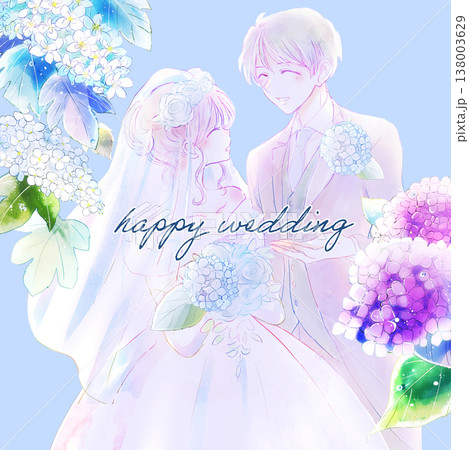 結婚式の新郎新婦 紫陽花 文字