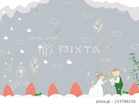 シンプルな手書きのウエディングイラスト素材 ベクター