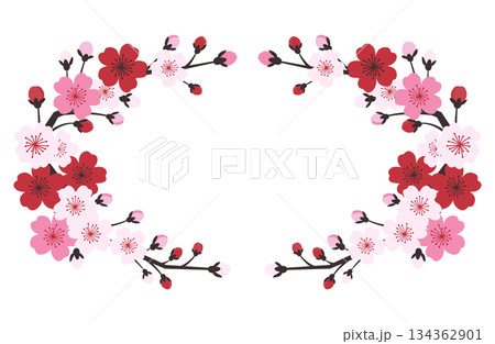 和風モダンな桜の円形フレーム・飾り枠イラスト