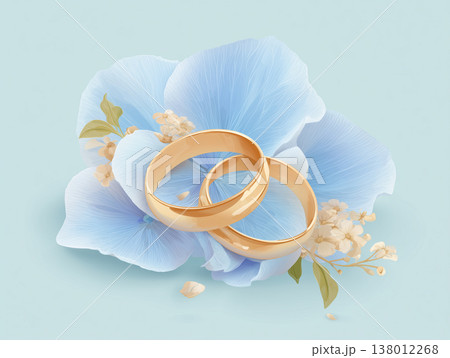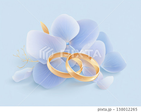 あじさいと結婚指輪のフラットデザインイラスト