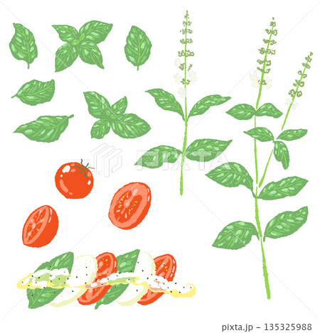 バジルの手書き風カラーイラスト素材(フレーム・リース・パターンなど)