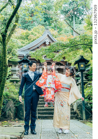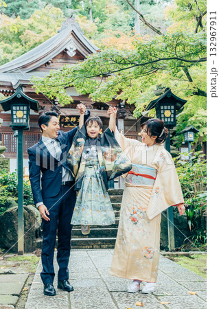 七五三のお参りに行く家族