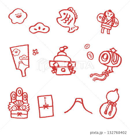 お正月のアイコンセット カラーのアイコン