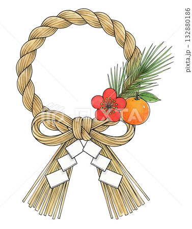お正月 年賀状 素材 しめ縄 水彩 手書き